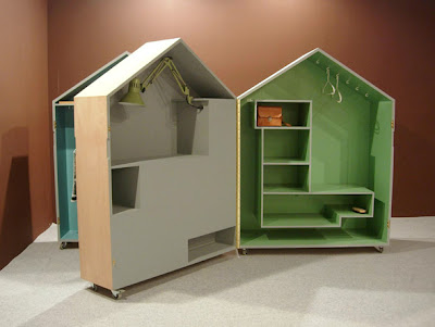 Als een poppenhuis voor volwassenen. Een schuur voor in je interieur. Alles opgeborgen. Het leven op wieltjes. Van keuken tot bureau en zelfs kleerkast. Een handzaam concept van Studio Gorm, de samenwerking tussen John Arndt en Wonhee Jeong. Twee ontwerpers uit de Eindhovense Academy en intussen gebaseerd in Rotterdam. Voor zo een binnenschuur moet je uiteraard wel wat plaats hebben. Daarvoor krijg je opgeruimde ruimte in de plaats.